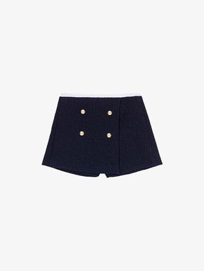 These high-waisted shorts with darts are influenced by both preppy style and rock 'n' roll. The black tweed and raw edging on the thighs mean they are neo-bourgeois-inspired, while the flared design from the mid-thigh flatters your figure and makes your legs look longer. The delicately pleated inset belt highlights the waist in a feminine and elegant way. Paired with a silky top in a bright colour, they shake things up with a touch of deceptively sensible glamour.