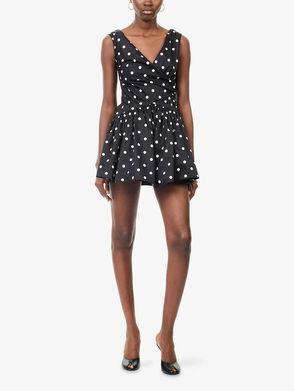 She's a frill Flared dress with long puff sleeves. Made of denim faded grey cotton. Ruffled plastron. Gathered frill on the hem.