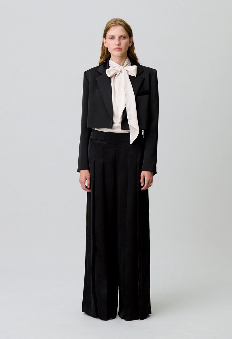 Each year, high society gathers for a grand gala evening. By reinterpreting this wardrobe in a feminine and contemporary way, our studio has envisioned lace details on dresses, tops, and skirts in predominantly black tones, combined with sheer accents. The work on pleating and draping is elevated by fluid and sharp cuts.