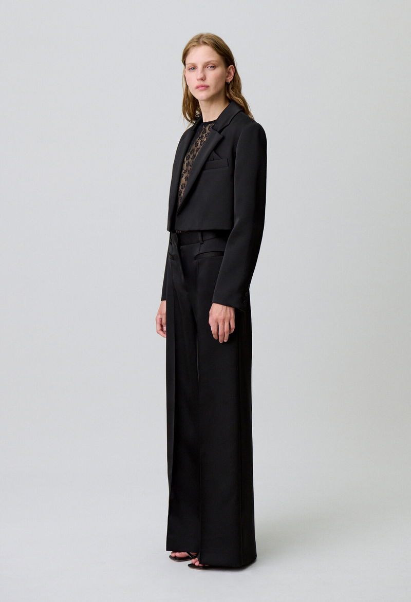 Each year, high society gathers for a grand gala evening. By reinterpreting this wardrobe in a feminine and contemporary way, our studio has envisioned lace details on dresses, tops, and skirts in predominantly black tones, combined with sheer accents. The work on pleating and draping is elevated by fluid and sharp cuts.