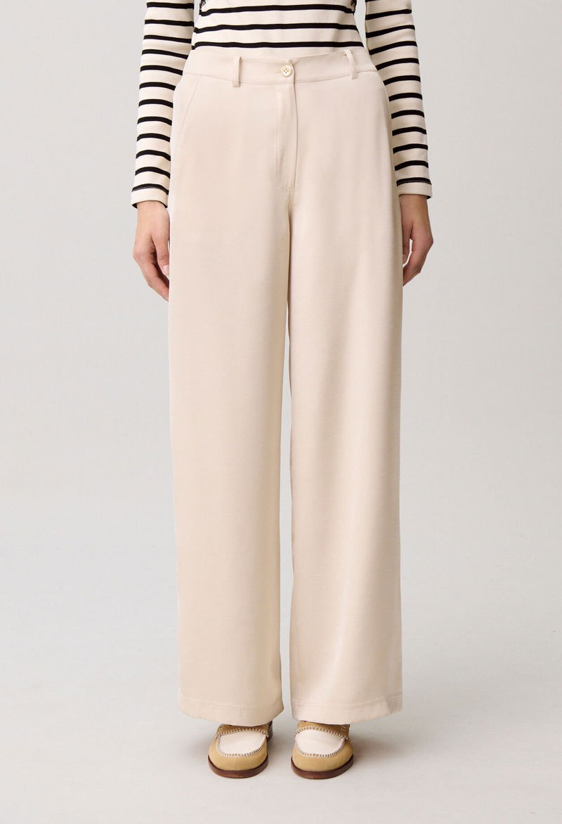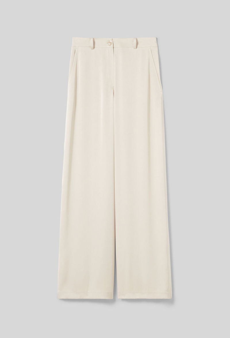 Straight-leg satin trousers with Italian pockets and back patch pockets