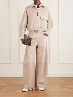 Our studio was inspired by the Yuppie movement (Young Urban Professional), emblematic of New York office wear in the 80s. This historically masculine wardrobe has been completely reinvented in a feminine version. Pastel colours - parma or sky blue - and mischievous details, like the jewel button, make up a silhouette that blends formal codes with a casual spirit.