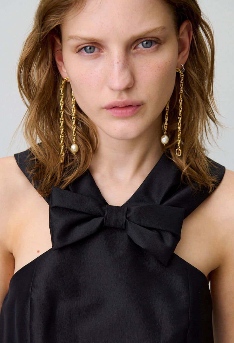 Each year, high society gathers for a grand gala evening. By reinterpreting this wardrobe in a feminine and contemporary way, our studio has envisioned lace details on dresses, tops, and skirts in predominantly black tones, combined with sheer accents. The work on pleating and draping is elevated by fluid and sharp cuts.