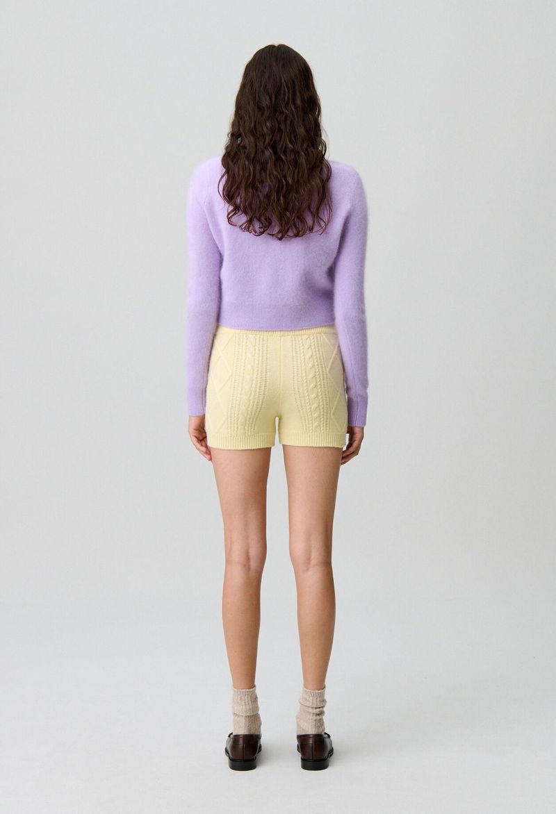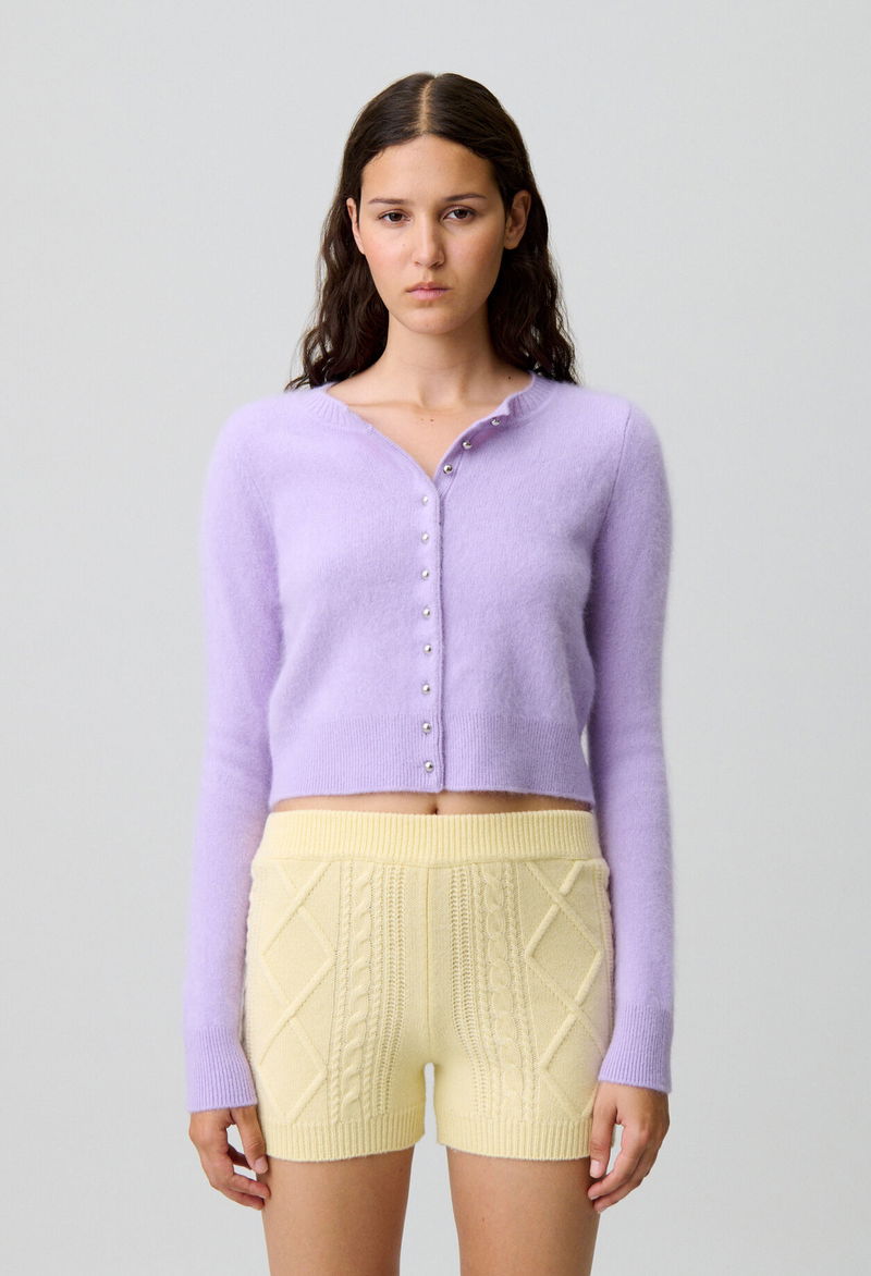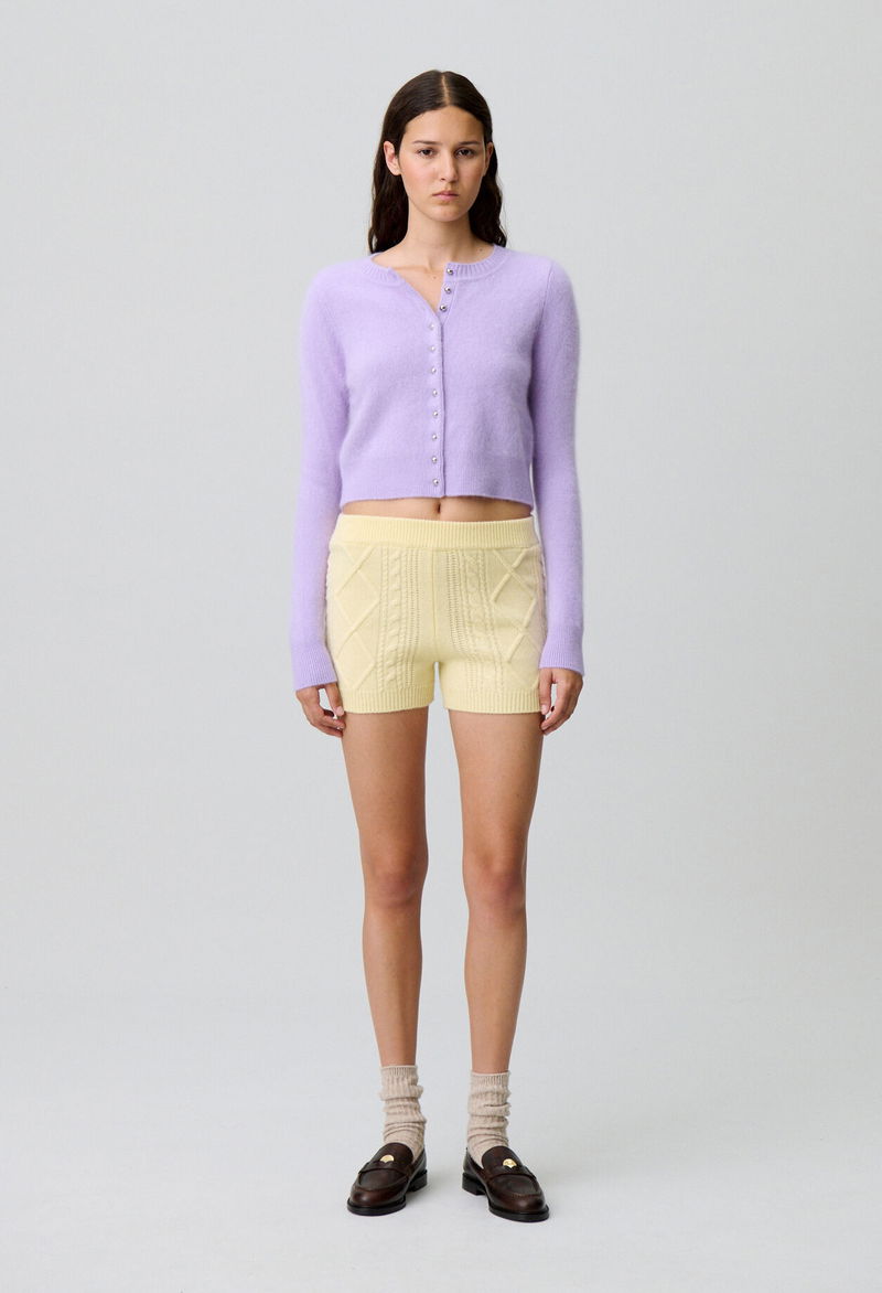 Our studio was inspired by the Yuppie movement (Young Urban Professional), emblematic of New York office wear in the 80s. This historically masculine wardrobe has been completely reinvented in a feminine version. Pastel colours - parma or sky blue - and mischievous details, like the jewel button, make up a silhouette that blends formal codes with a casual spirit.