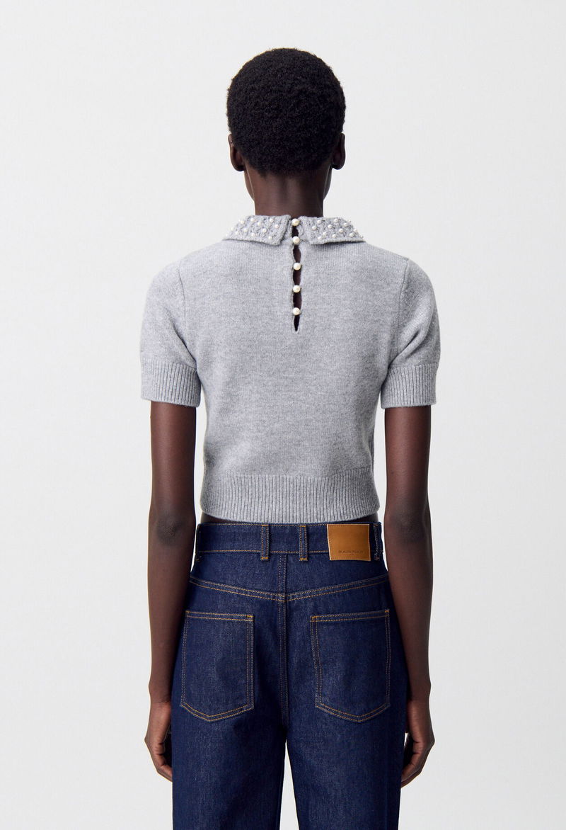 This historically masculine wardrobe has been completely reinvented in a feminine version. Pastel colours - parma or sky blue - and mischievous details, like the jewel button, make up a silhouette that blends formal codes with a casual spirit.