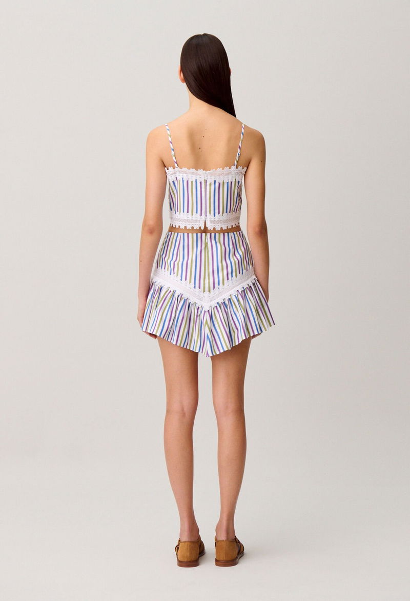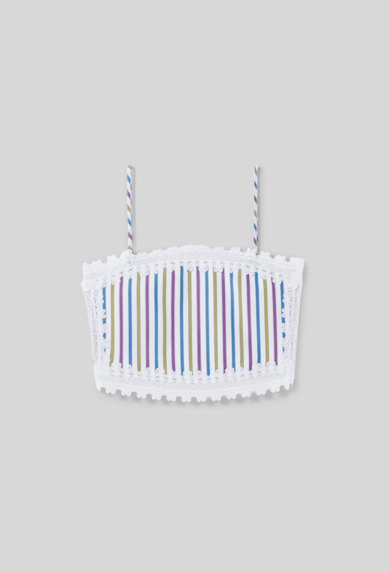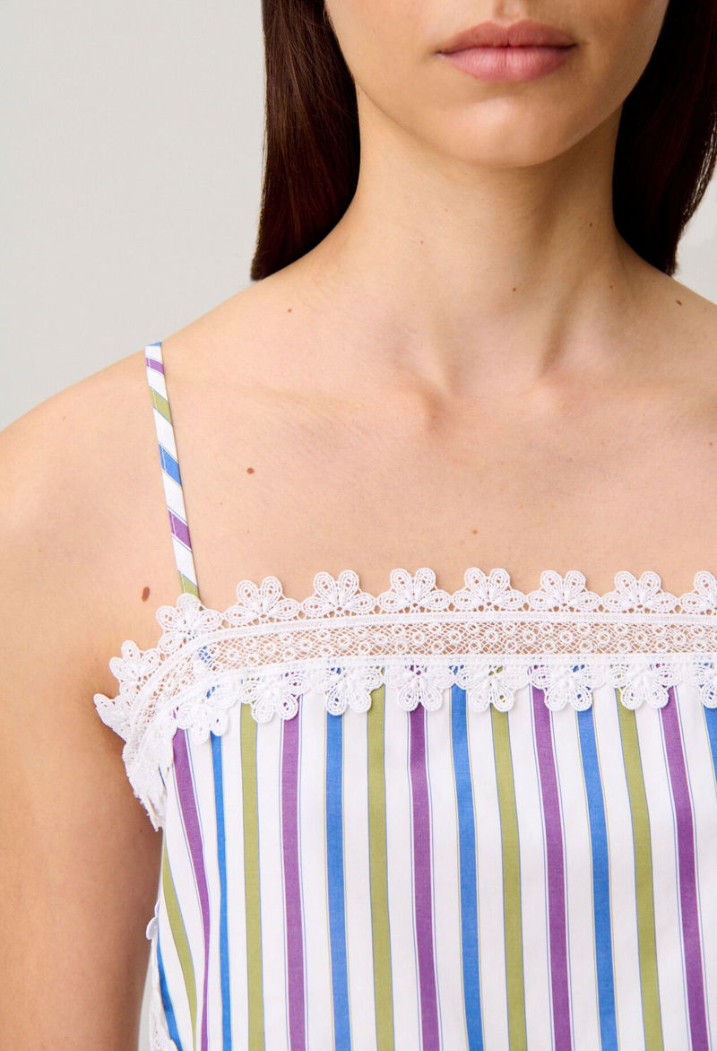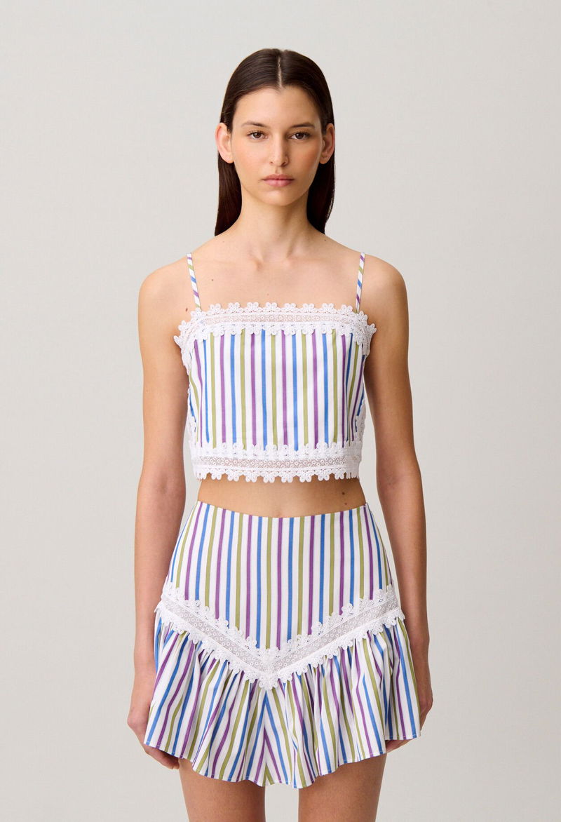 Short, straight-cut top with lace detailing