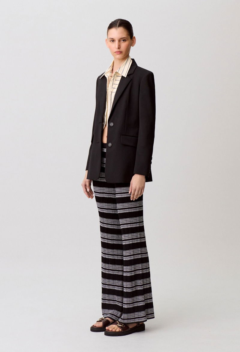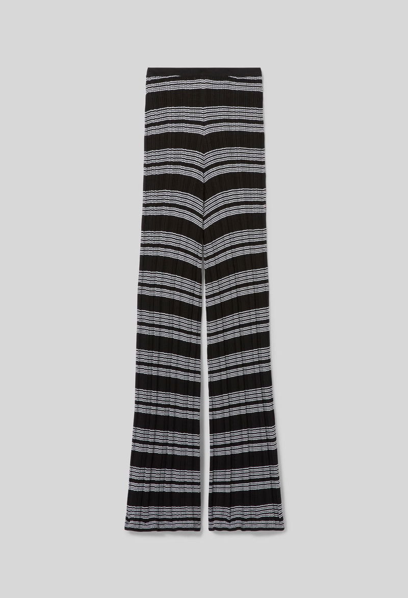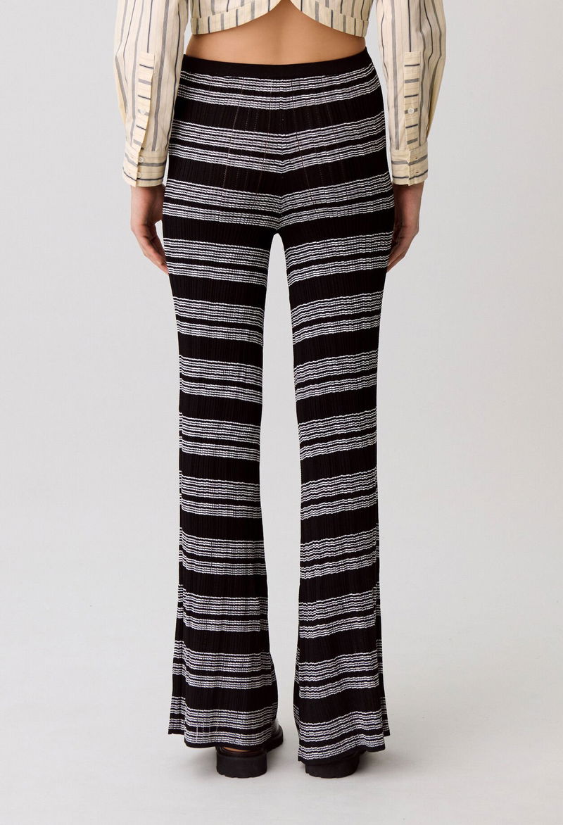 Knitted trousers with a regular elasticated waist and straight leg with striped pattern.