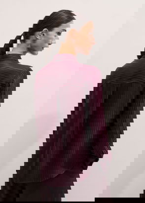 Our studio was inspired by the Yuppie movement (Young Urban Professional), emblematic of New York office wear in the 80s. This historically masculine wardrobe has been completely reinvented in a feminine version. Pastel colours - parma or sky blue - and mischievous details, like the jewel button, make up a silhouette that blends formal codes with a casual spirit.