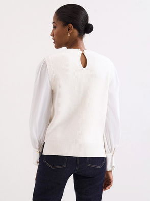 Sleeveless striped waistcoat with a low V-neckline and front fastening with 3 gold buttons - Sleeveless striped waistcoat - Low V-neckline - Fastened at the front with 3 gold buttons - Chest darts - Fitted and form-fitting.
