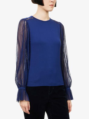 This top with its Victorian collar is gorgeously lightweight and boasts delicate detailing for a particularly refined on-trend style. The openwork lace panel enhances the bust creating a yoke effect, while the puffed sleeves have gathered detailing and small ruffled cuffs. Wear this romantic, timeless top loosely tucked into jeans and loafers for a preppy look. Wear with a pencil skirt and high heels for an office outfit.