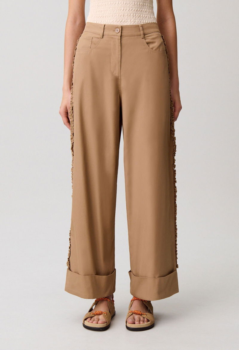 Relaxed wide-leg, straight-cut trousers with large turn-ups and ruffles