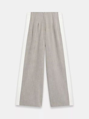 Our studio was inspired by the Yuppie movement (Young Urban Professional), emblematic of New York office wear in the 80s. This historically masculine wardrobe has been completely reinvented in a feminine version. Pastel colours - parma or sky blue - and mischievous details, like the jewel button, make up a silhouette that blends formal codes with a casual spirit.