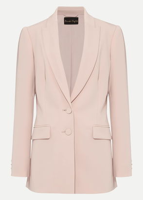 Beige suit jacket. Suit collar. Double-breasted. Long sleeves. 2 patch pockets. 3 buttons on the cuffs. 2 back slits.