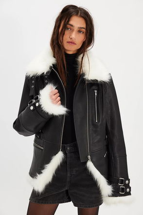 Embrace a sleek, effortless style with this too-cool jacket from Closed, featuring a functional, reversible design, with a buttery leather fabrication on one side and a cozy faux shearling on the other.