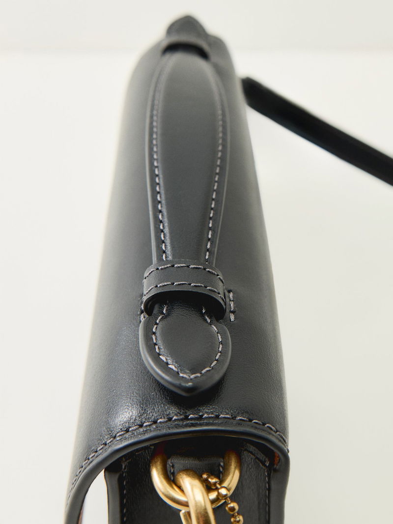The Elora Top Handle Crossbody Bag by COACH is crafted from refined calf leather with a structured silhouette. Finished in classic black, it offers versatile wear with polished detailing. A timeless bag designed for everyday elegance.