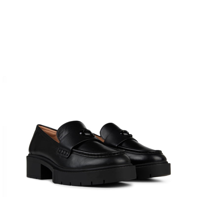 The Leah Loafer by Coach is a timeless style that has been re-imagined with a 90's style lug sole, giving this simple silhouette a subtle lift. Crafted from a leather upper and lining, this style features a slip-on fit with a rounded toe, an oversized rubber out-sole, and memory foam padding for an all-day wear. This style is finished in a core colour way with tonal signature hardware embedded onto the upper for a designer finish.