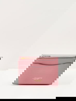 Coach leather cardholder. Designer stamp, front slip pocket, five card slots, zip-fastening coin pocket, fully lined.