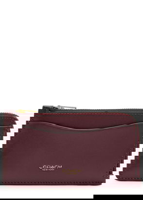 Coach leather wallet. Quilted, designer plaque, slip pocket at back, two internal card slots, three internal compartments, fully lined. Zip fastening across top.