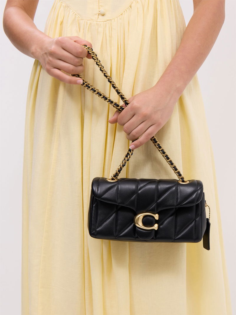 The Quilted Tabby Shoulder Bag 20 with Chain combines classic design with modern functionality. Featuring a quilted exterior and a sleek chain strap, this bag offers both style and convenience. Its compact size is perfect for carrying essentials, making it an ideal accessory for day-to-night wear. Durable materials ens