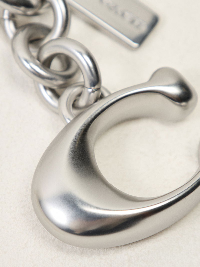 The Solid C Bag Charm in silver offers a refined accent to any handbag. Crafted with quality materials, it provides a durable and stylish addition that enhances your bag's look. Its simple yet elegant design allows for easy attachment, adding a touch of sophistication to your everyday accessories.