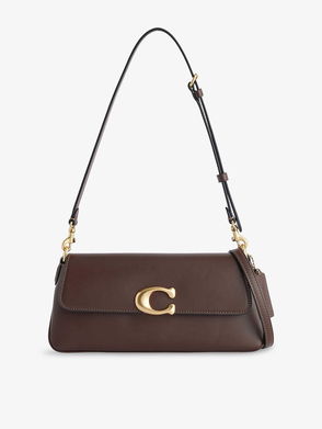 Coach leather shoulder bag 100% leather; lining 100% fabric Zip fastening Structured curved shoulder strap, brand tags at side, all-over smooth leather, gold-toned hardware, one main compartment, internal buttoned pocket and brand patch, fully lined.