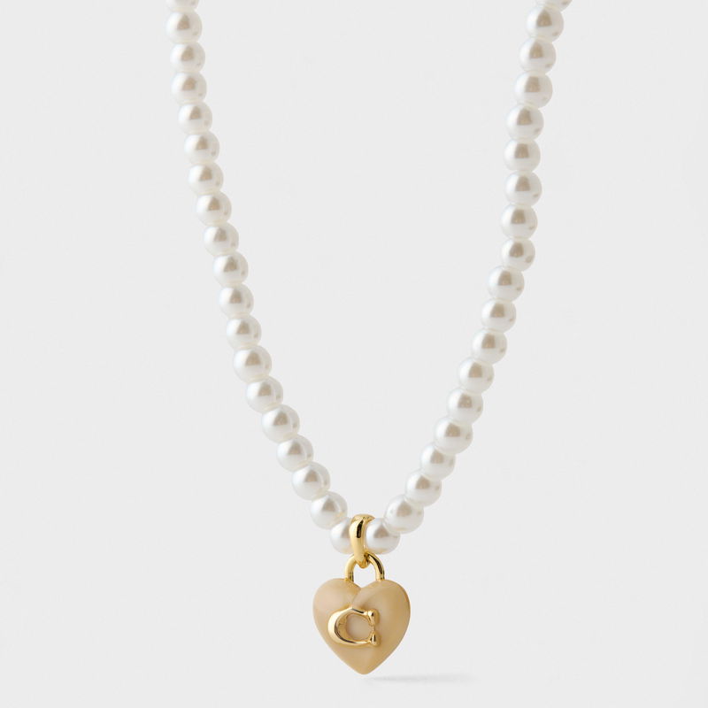 The Coach Women's PearlH Choker Necklace sits close to the neckline with a structured profile. Designed for standalone wear or paired with other pieces, it maintains a sleek finish.