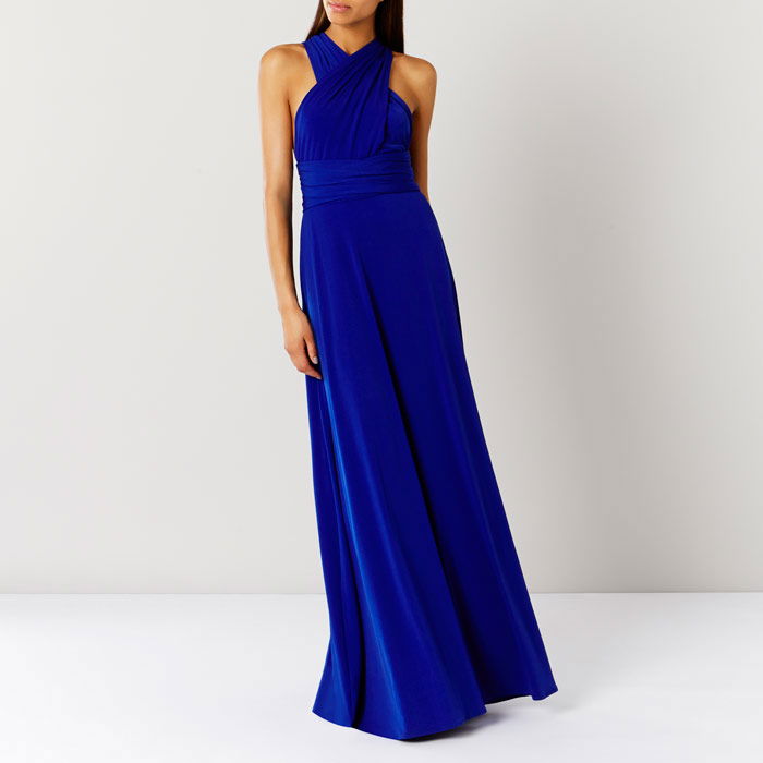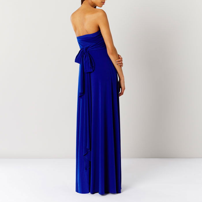 The beautifully slinky Corwin Maxi Dress can be worn 15 different ways, a style to suit every shape. Simply twist and wrap to create endless stunning styles. This graceful maxi dress hugs the body beautifully and elongates with its skirt which moves effortlessly.