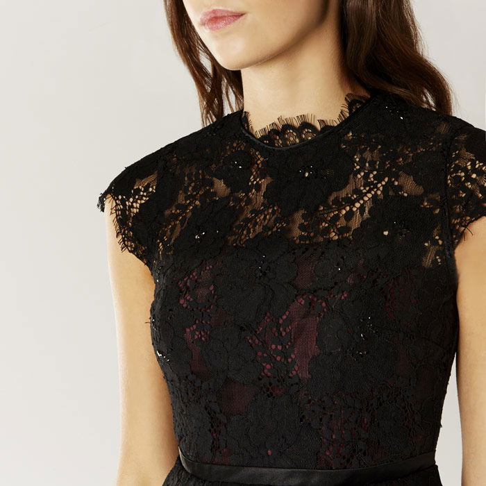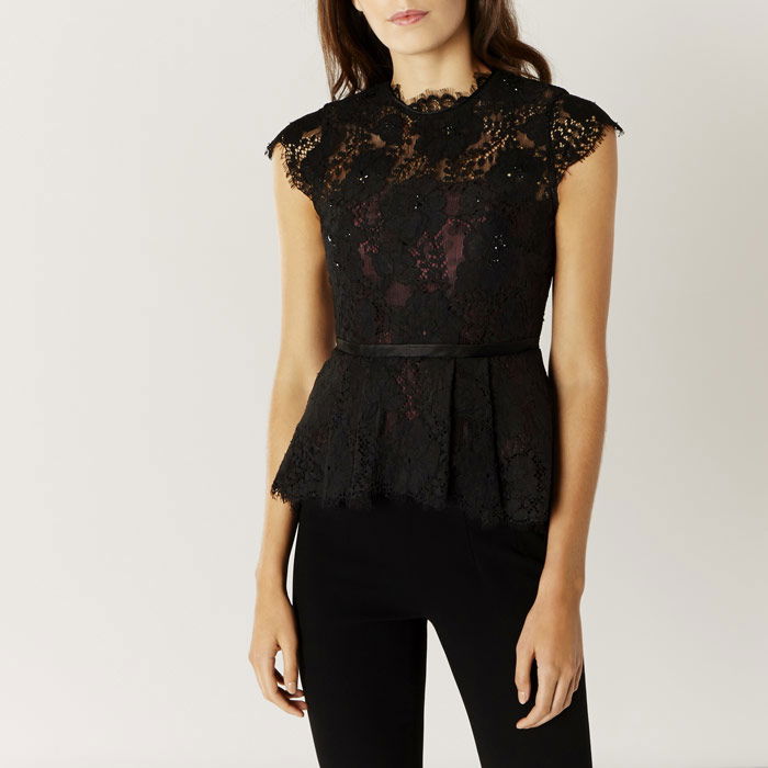 Work lace into your wardrobe with this beautifully constructed must have cropped top. The Limited Edition Fifi Lace Top is crafted from romantic floral lace and features a high scalloped neckline and a peplum style cinched in waist. The underneath bodice adds a gorgeous focus point to this piece. Wear yours with slim leg trousers for a stunning evening look.