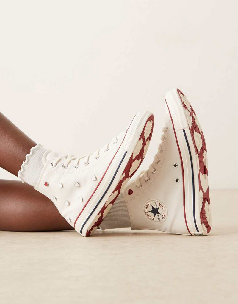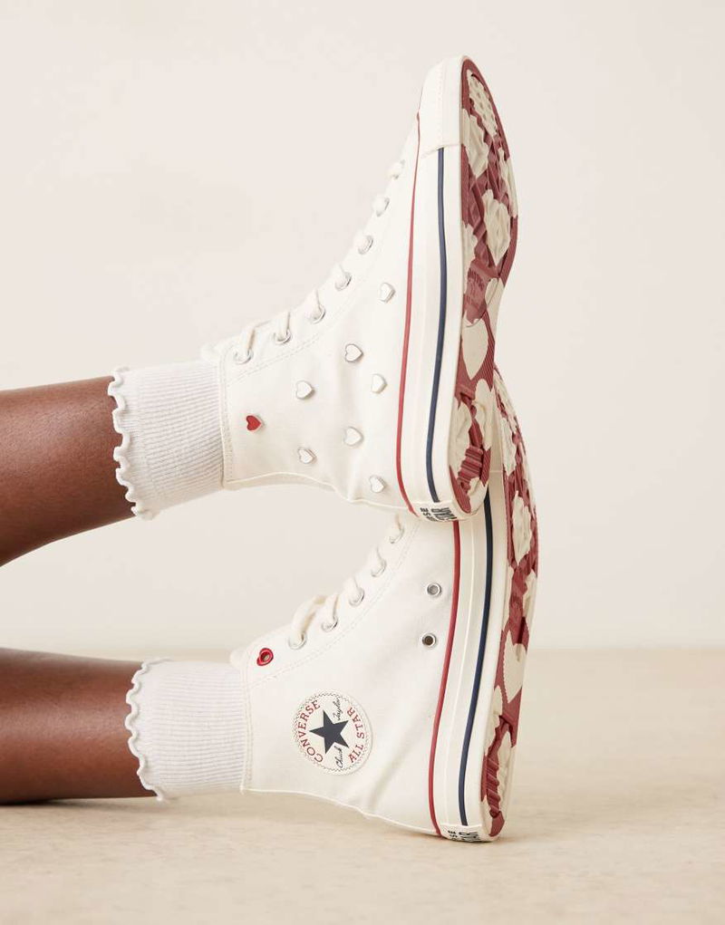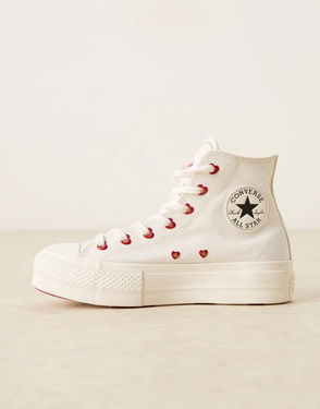 Chuck taylor all star hi valentines trainers with heart detail in white.