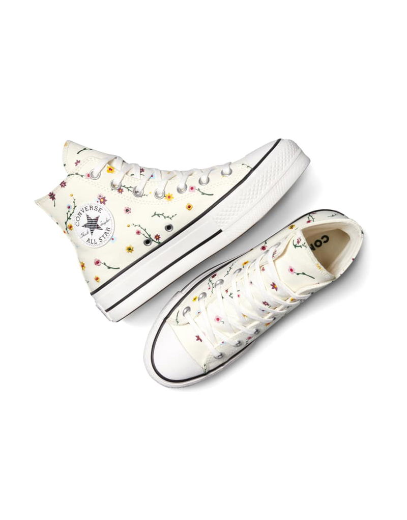 Chuck Taylor All Star Lift Hi Platform Flower Embroidered Trainers In Cream