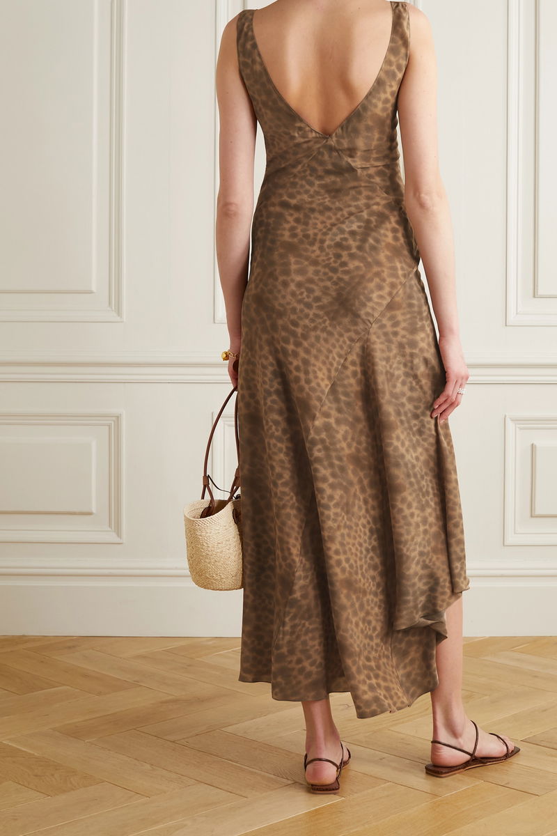 Spanish designer Rosa Esteva loves celebrating local craftsmanship in each Cortana collection. Made at a small atelier in Barcelona, this leopard-print silk dress is cut on the bias to create the most beautiful and flattering drape. Strappy sandals will sit nicely beneath the flouncy, asymmetric hem.