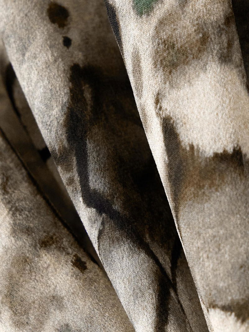 Cortana's 'Meena' jacket is printed with a watercolor-inspired pattern designed by the Creative Director herself. It's made from lightweight silk-georgette and can be worn loose or wrapped around the front and tied at the back.