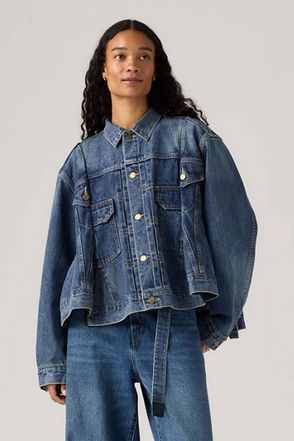 This jacket is made from heavyweight denim with contrast stitching for a raw denim look. An A-line fit, it has metal buttons at the front and a mix of functional pockets.