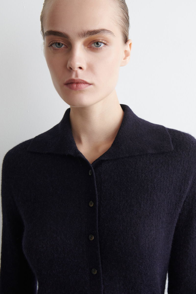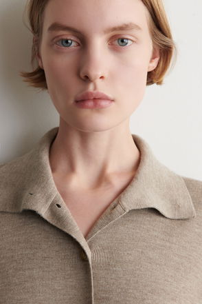 The Autumn Winter 2025 collection is underscored by ski-inspired underpinnings. Rendered in a brown-mélange tone, this cardigan is knitted with luxuriously tactile alpaca and merino wool and detailed with a high neckline, thumbhole cuffs and finely ribbed trims. Style it as a set with the matching leggings.