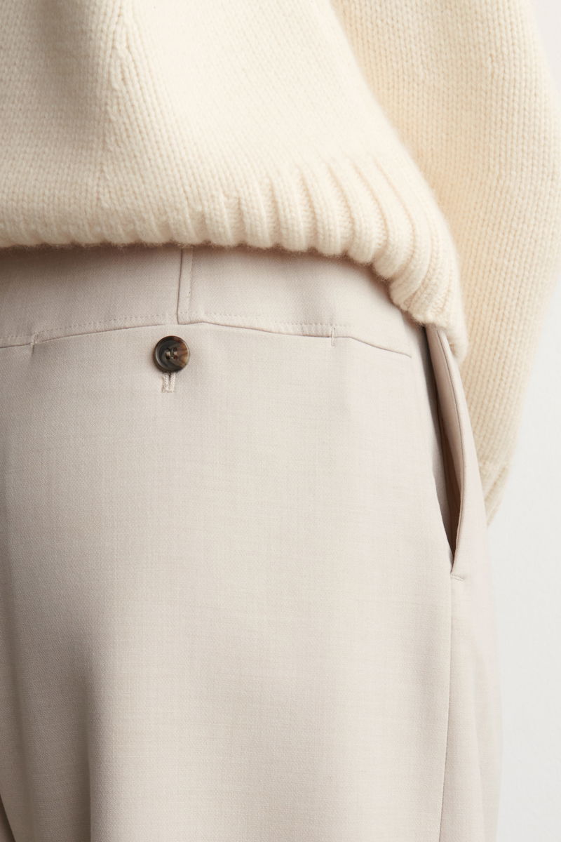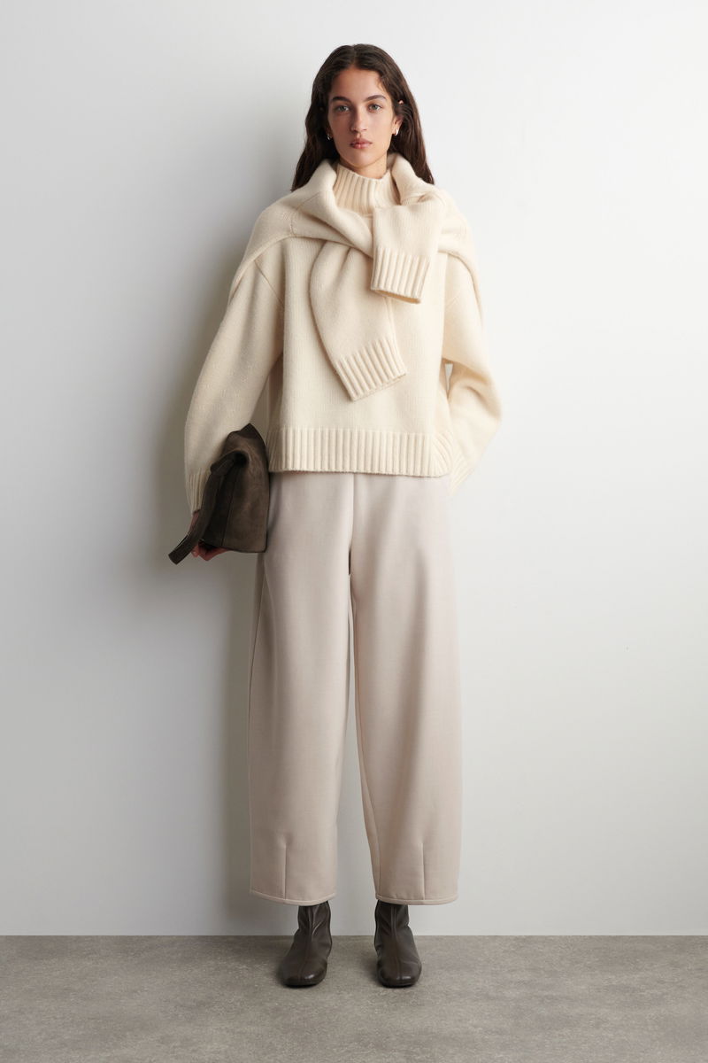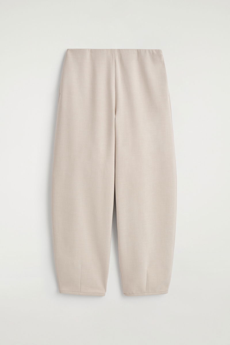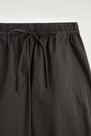 These modern trousers offer a tailored take on classic loungewear. Offered in muted charcoal, they're made from a woven fabric in a barrel-leg silhouette and feature darts at the waist and ankle to temper the shape. Style them as a co-ord with the matching top.