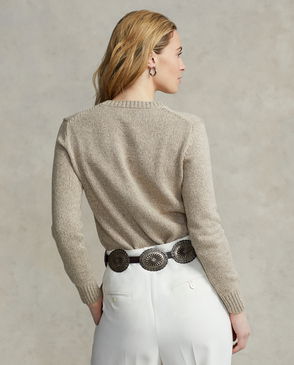 The womenswear team propose a refined take on sportswear codes for Pre-Fall 2024. This polo-inspired jumper is knitted from pure RWS wool in a rich coffee hue and has an open collar, batwing sleeves and a wide ribbed hem.