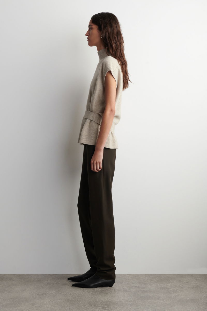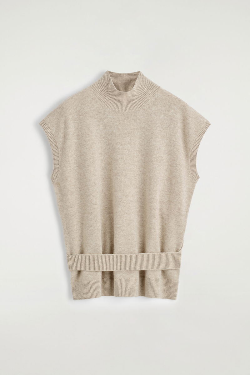 Refined in its appeal, this vest is knitted from ultra-soft merino wool and designed in a softly rounded shape. It features a ribbed funnel neck and deconstructed hem that subtly tempers the waistline. Style it with classic tailoring.