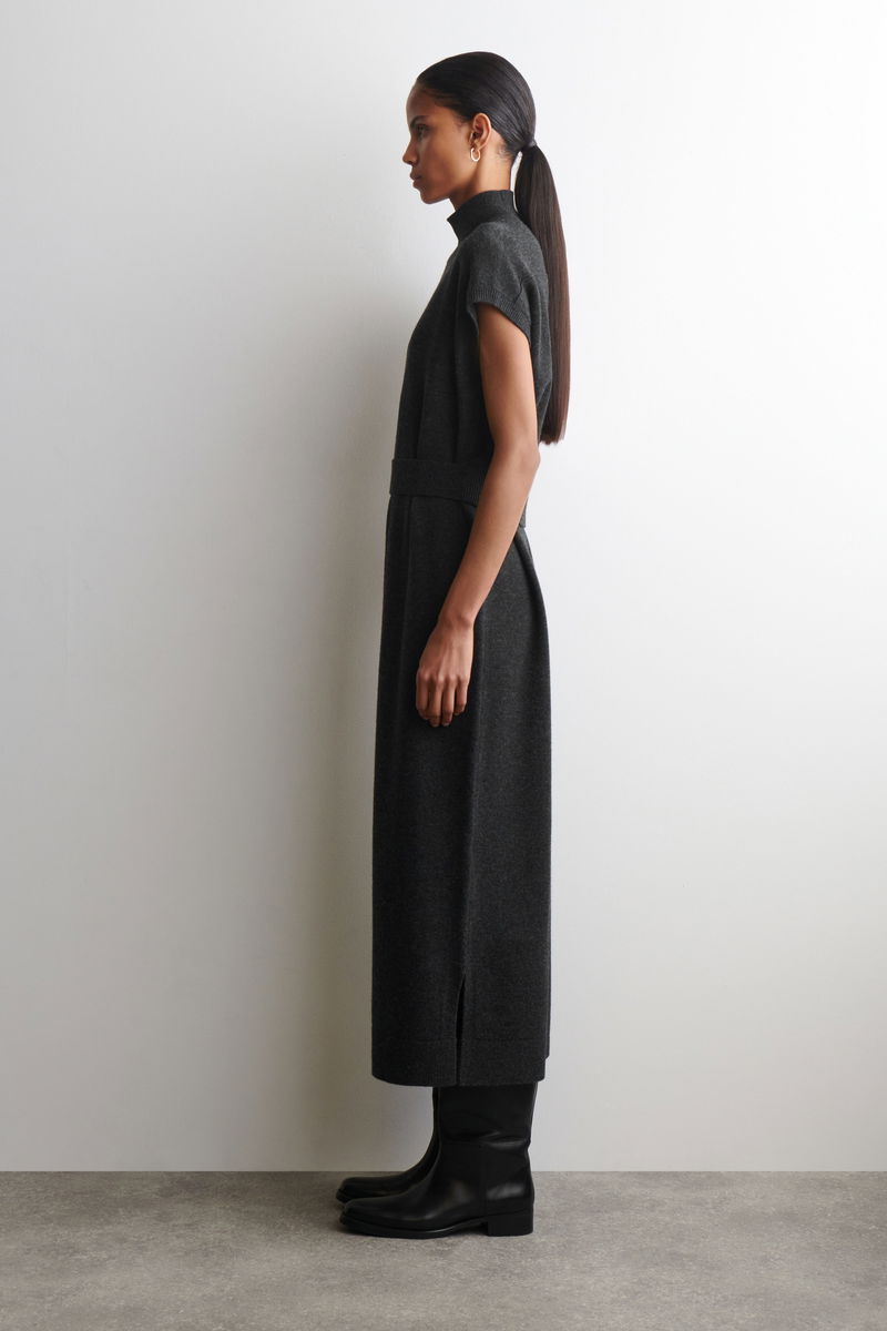 BELT-DETAIL MERINO WOOL FUNNEL-NECK DRESS
