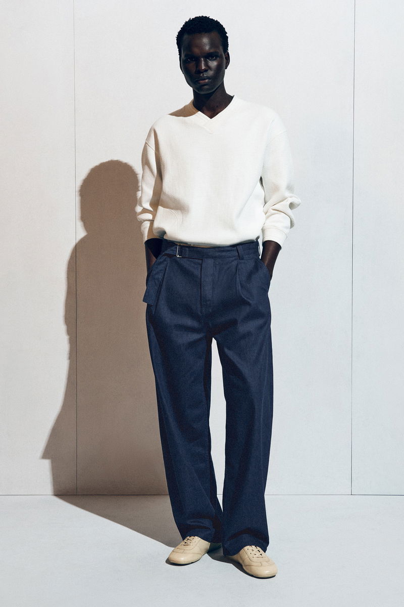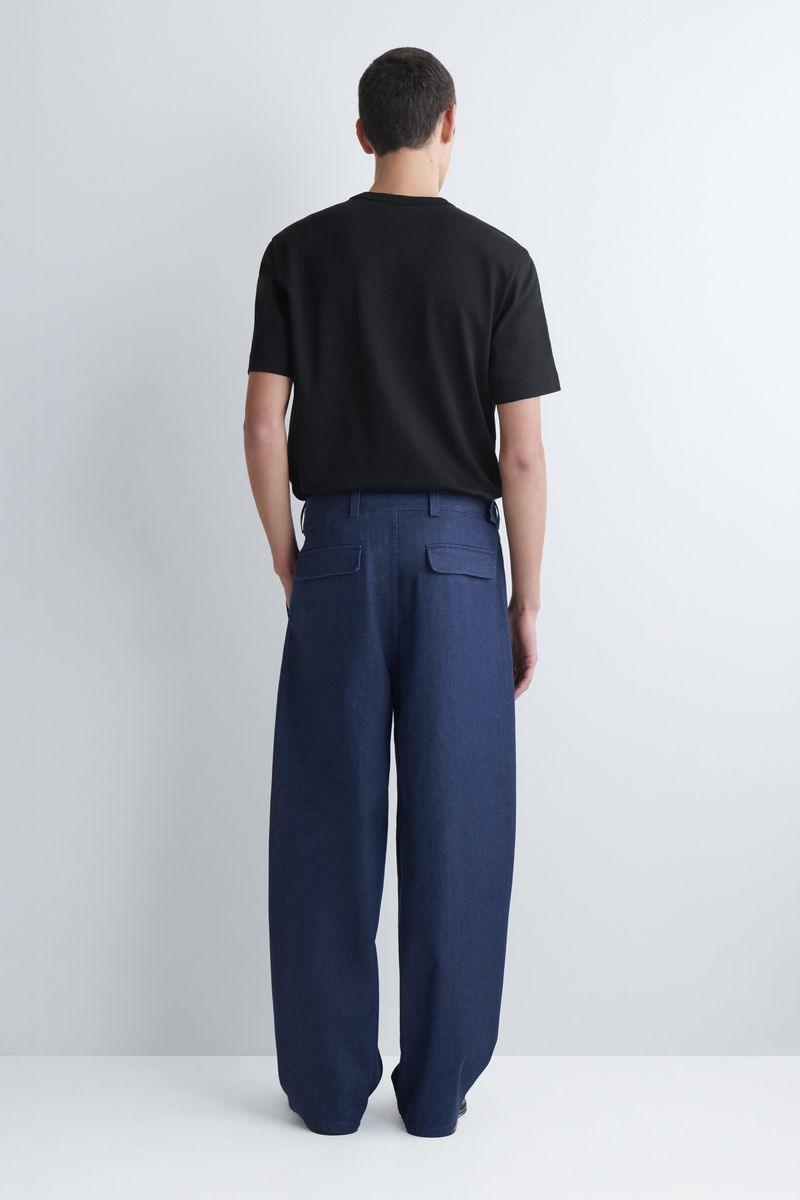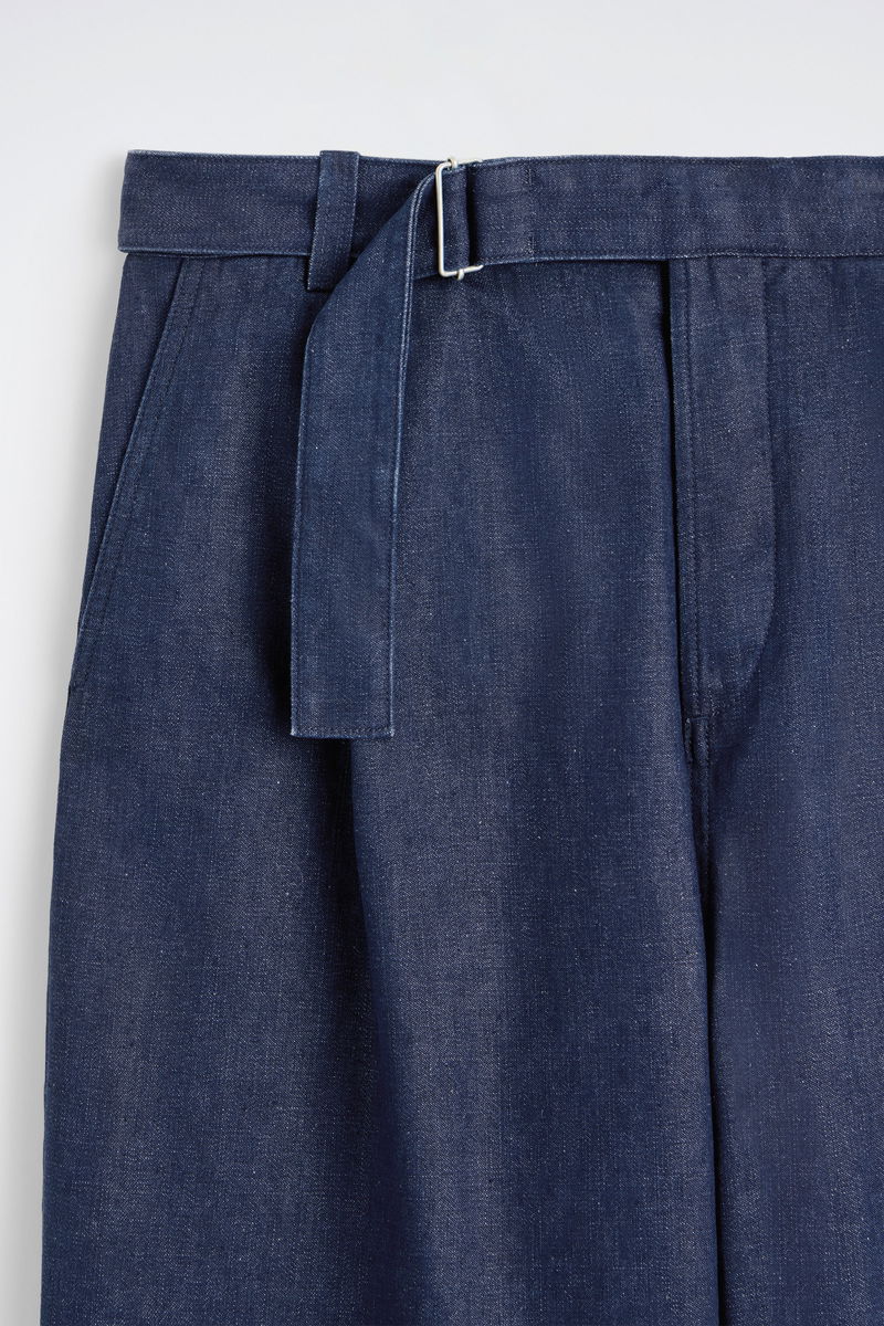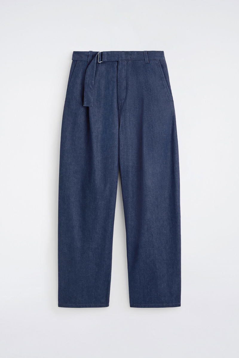 BELTED DENIM RELAXED-FIT BARREL-LEG TROUSERS