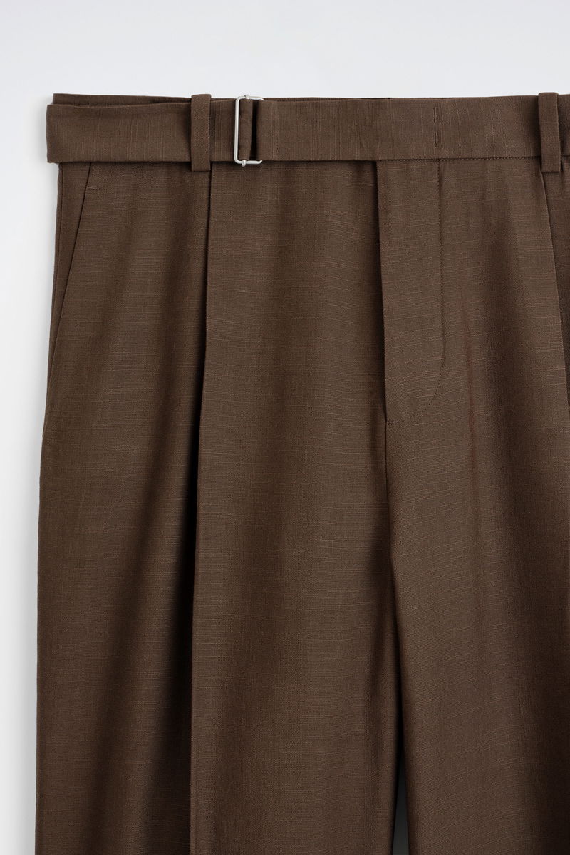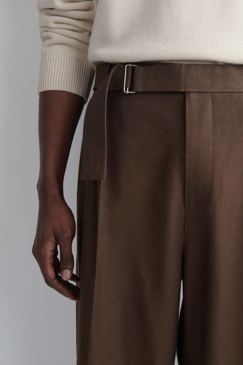 BELTED LINEN-BLEND RELAXED-FIT WIDE-LEG TROUSERS