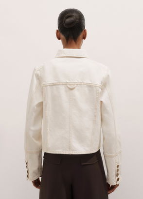 Inflected with utility references, this denim jacket is washed in a classic ecru hue and designed with oversized patch pockets and side slits that enhance the relaxed shape.