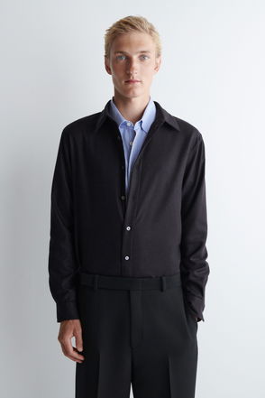 The COS menswear team reframe the utility shirt for the autumn/winter season. Offered in versatile navy, this one is crafted from lightweight recycled wool and features a classic collar, patch pockets and epaulette details on the shoulders. Style it solo or layered over a tee.