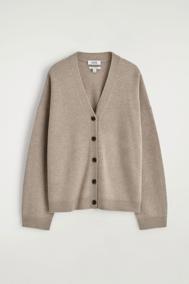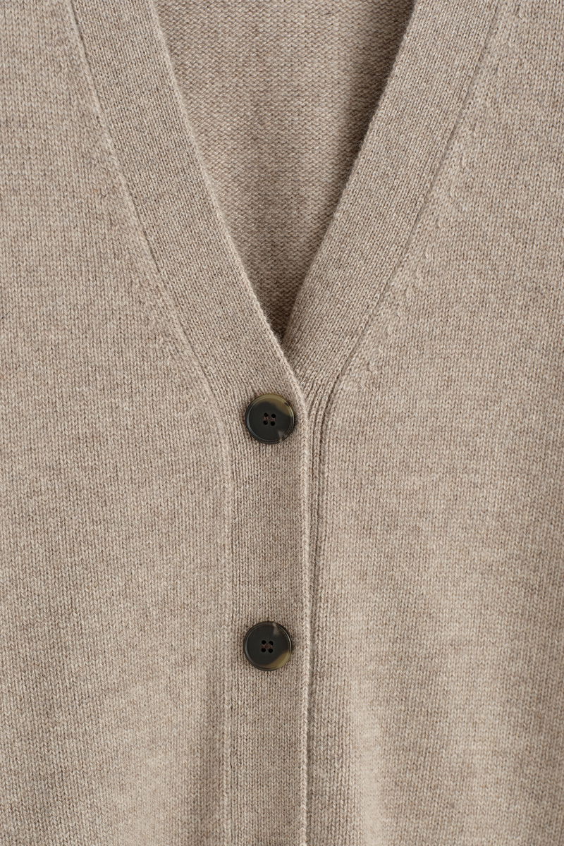 Luxuriously soft cashmere is a key tenet of the COS wardrobe. Rendered in an enduring taupe hue, this cardigan is crafted from premium Good Cashmere Standard® yarn and designed with a V-neckline, dropped shoulders and chunky ribbed trims.