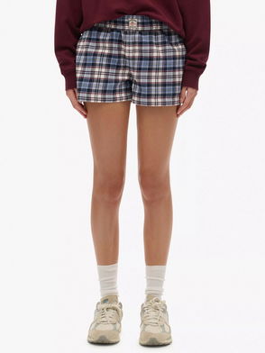Rethinking a warm-weather essential. Made from cotton seersucker, these shorts have a check pattern and stitched down pleats at the front.