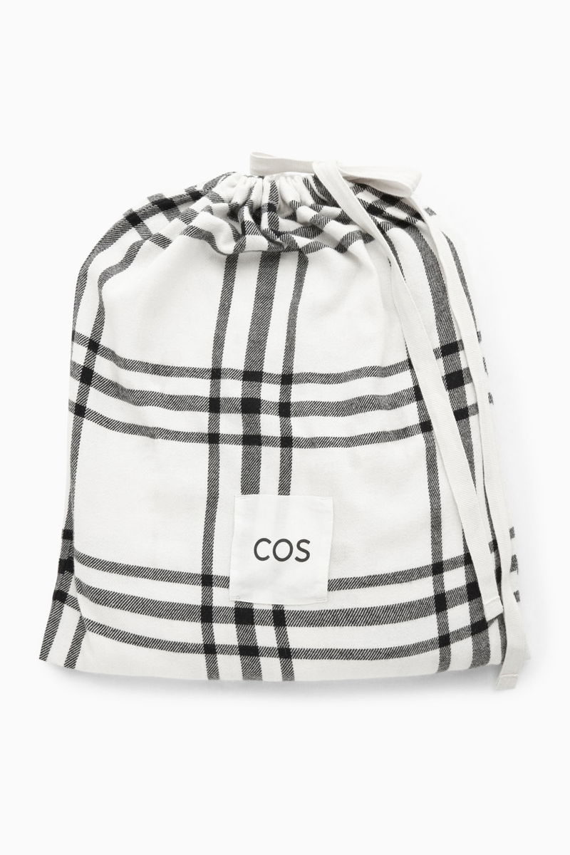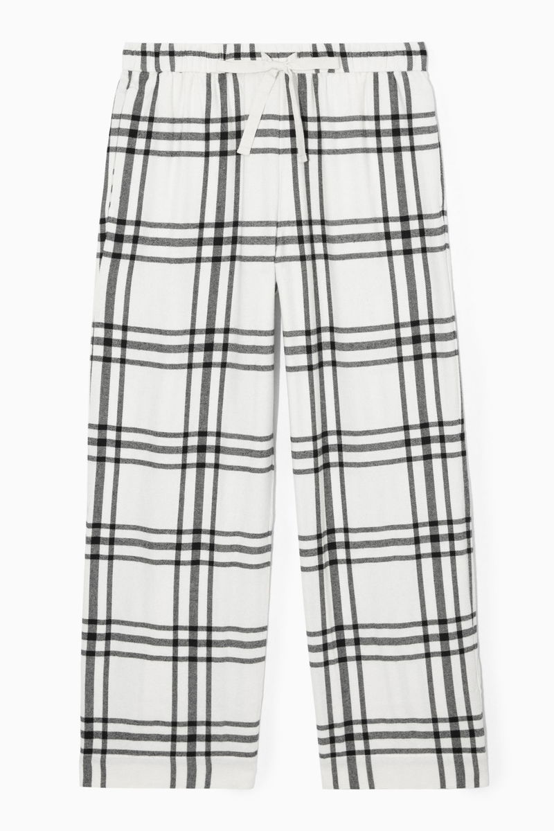 Crafted from soft organic-cotton flannel, these cosy pyjamas are printed with contrasting windowpane checks and comprise a long-sleeved shirt and relaxed elasticated trousers. They come packaged in a coordinating drawstring pouch, making them ideal for gifting or packing for weekend breaks.