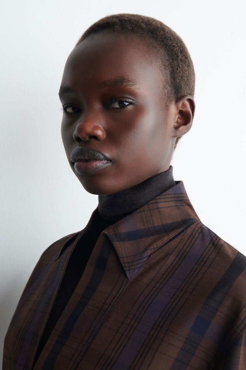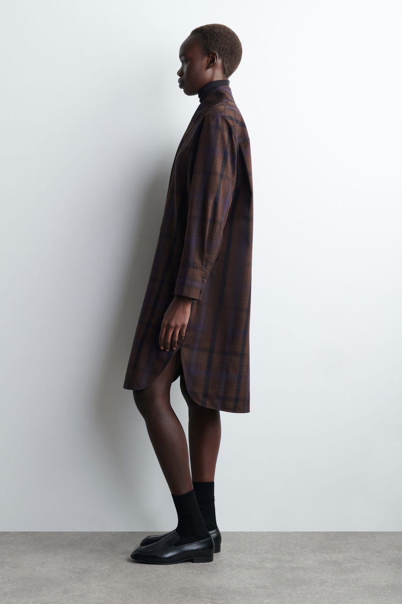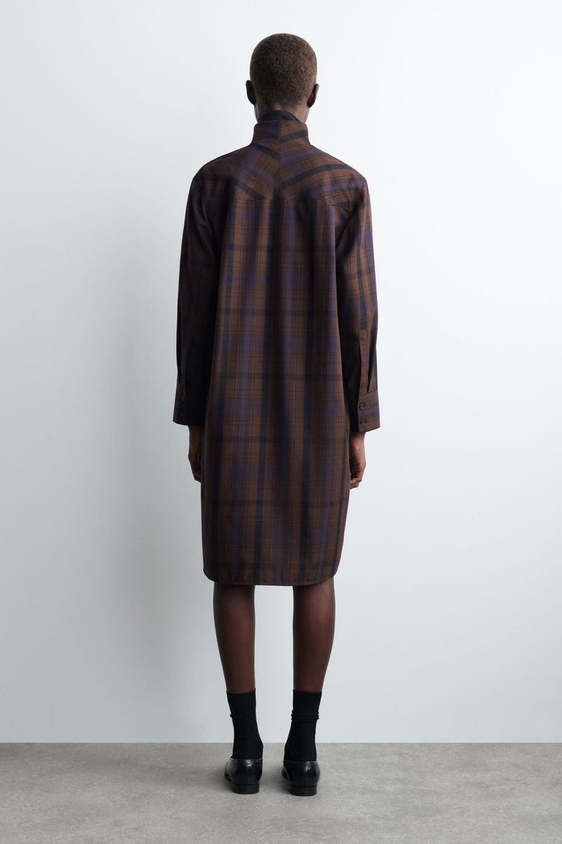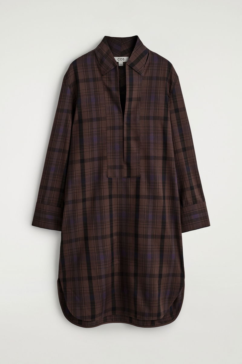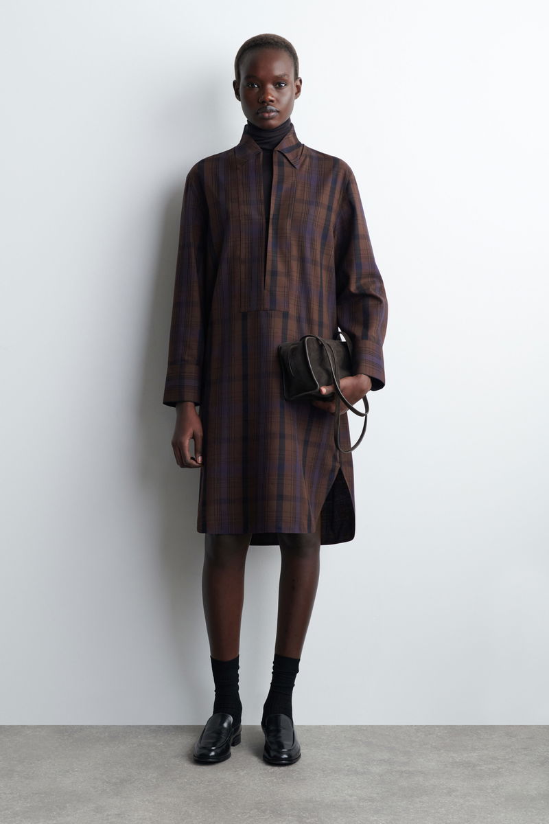 This season, the classic shirt dress is renewed through tactile fabrics and a rich colour palette. Crafted from wool and cotton, this piece is patterned with heritage-inspired checks and features a pointed collar and concealed placket. Style it with leather loafers.