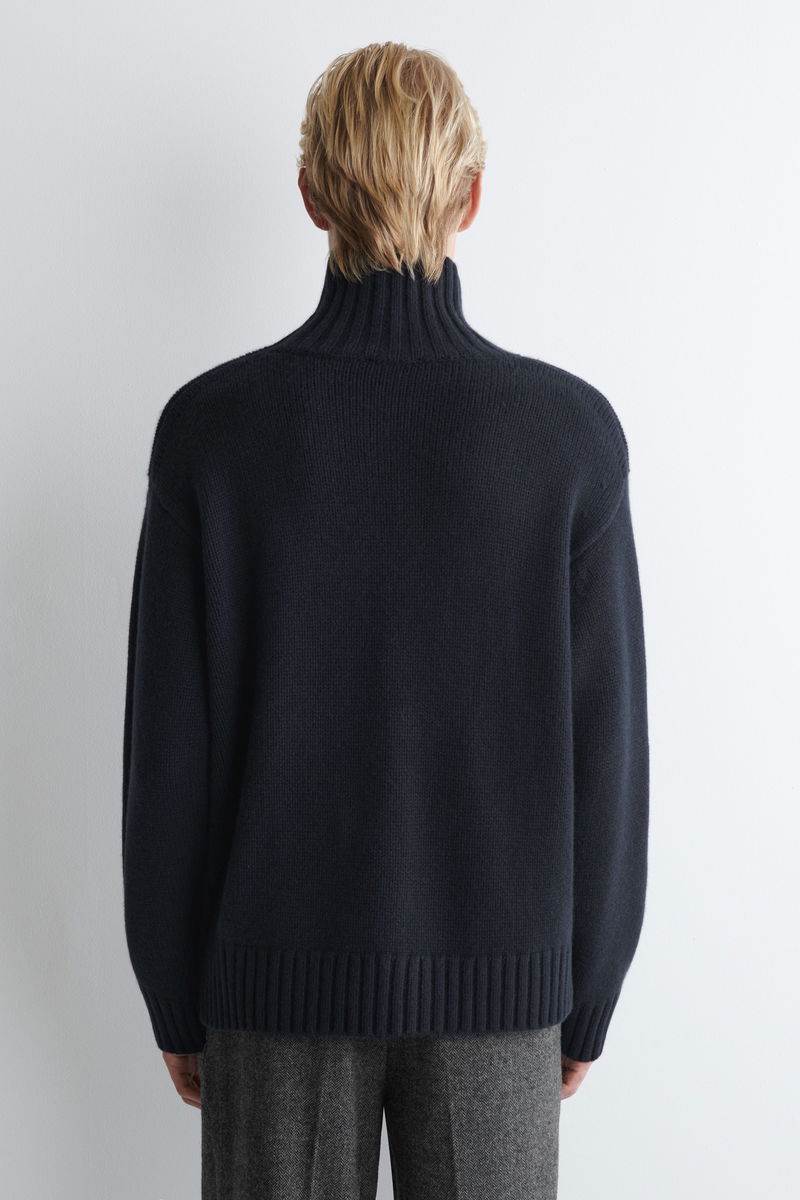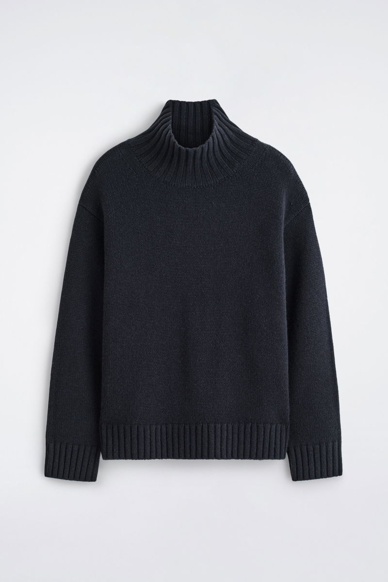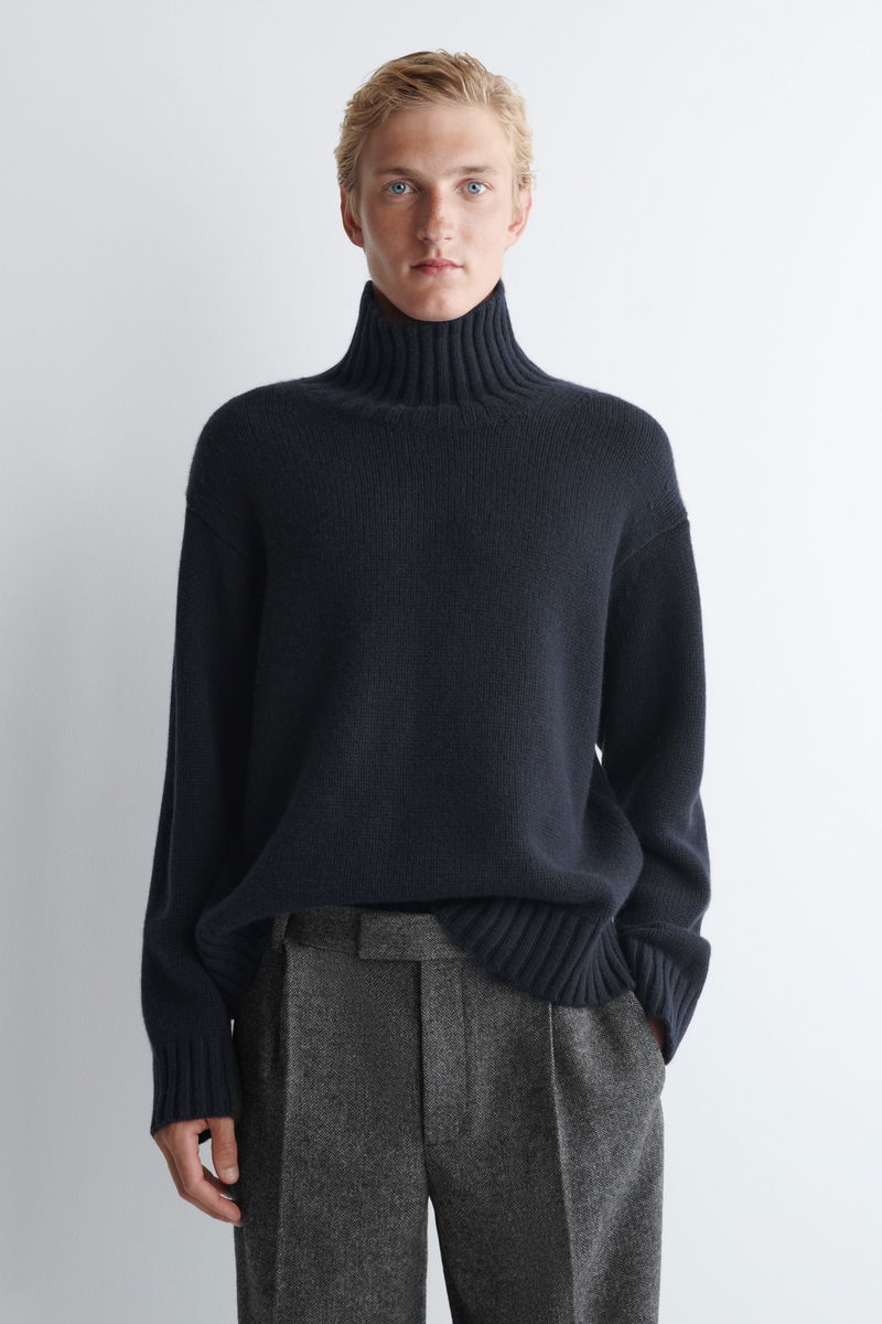 A cashmere jumper is a true staple of the autumn/winter wardrobe. Cut in an effortlessly relaxed shape, this one is knitted from Good Cashmere Standard® yarn that has a luxuriously soft handle and features a chunky ribbed funnel neck, cuffs and hem. The dark-khaki hue is easy to style with denim or tailoring.