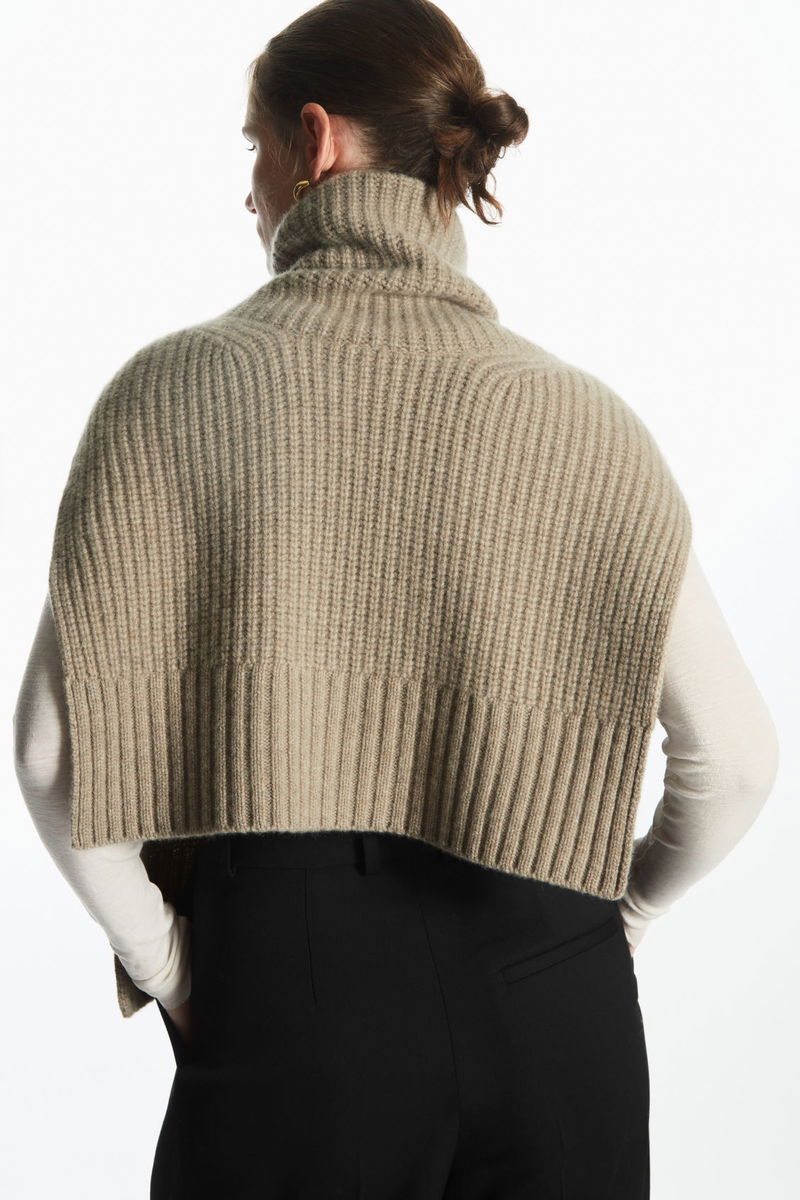 Crafted from 100% traceable cashmere, this chunky ribbed-knit hybrid vest is designed to be layered. The loose turtleneck will keep you warm through the colder season.