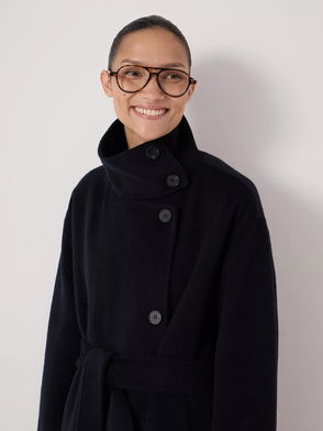 Playful yet refined, this jacket is designed with a rounded, oversized collar that sweeps across the shoulders. It's crafted from luxuriously soft wool that's double-faced for a premium hand feel and offered in a rich navy tone.