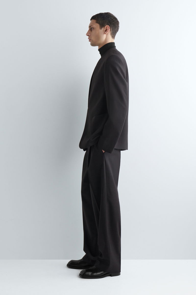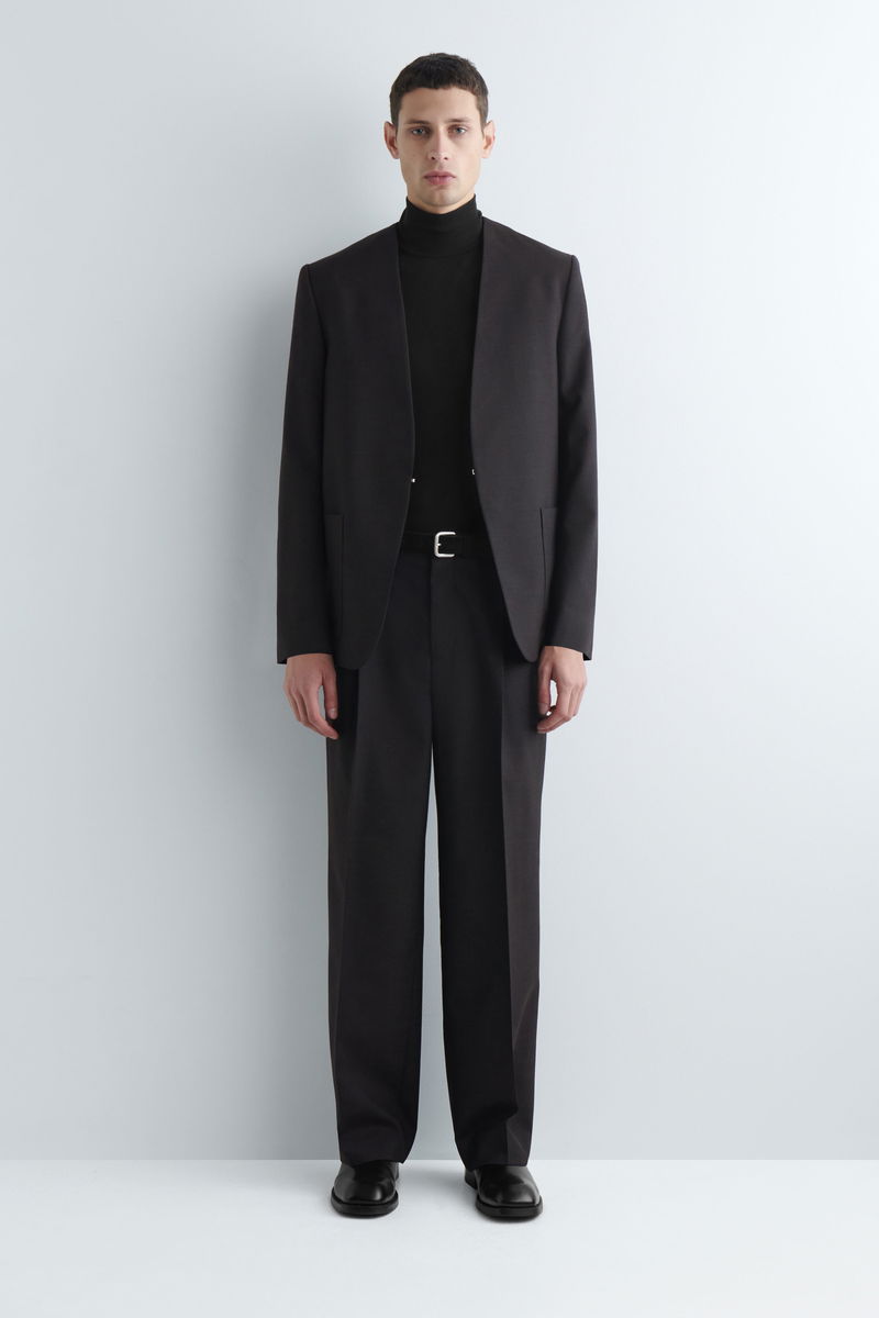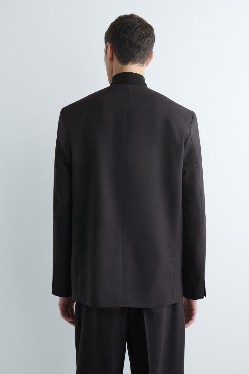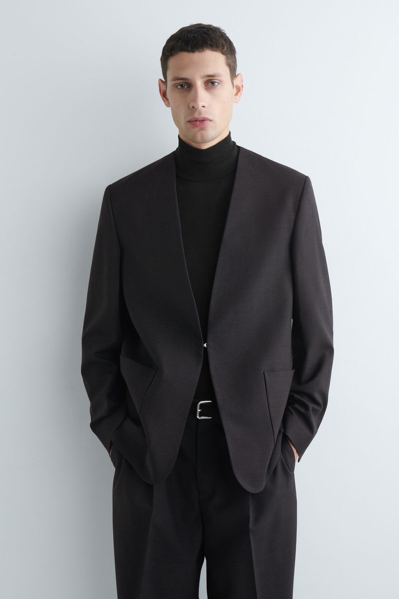 Designed without a collar or lapels, this refined blazer is crafted from tactile RWS wool and tailored in a relaxed shape with a silver-tone hook in place of classic buttons. Style it with straight-leg trousers.